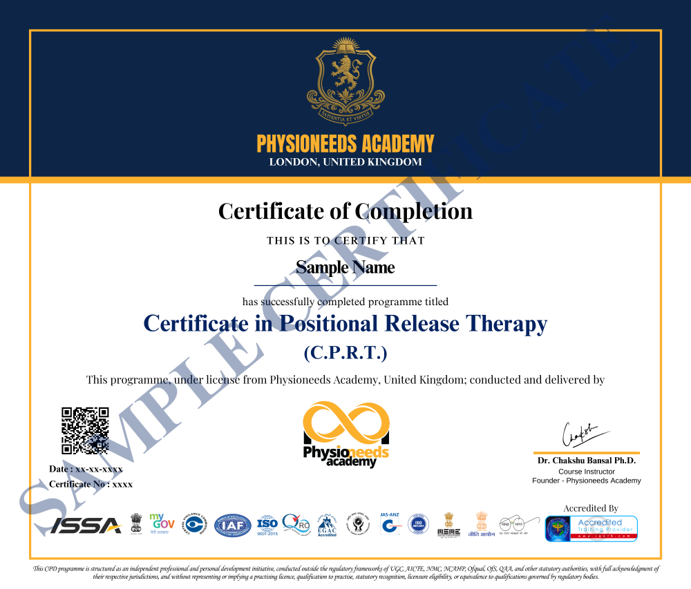 You can enhance your clinical skills through a Positional Release Therapy certification that provides hands-on training and evidence-based protocols. Our PRT training for therapists is designed for physiotherapists, chiropractors, osteopaths, and other rehab professionals. The best positional release therapy certification online includes theory, techniques, and practical applications to ensure you're job-ready.
